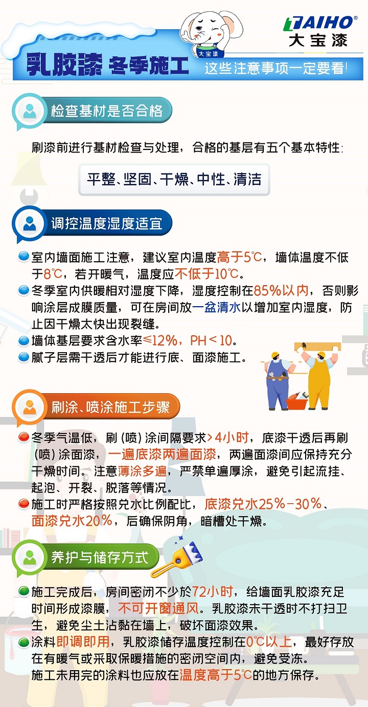 如果您對(duì)冬季墻面施工還有疑問,歡迎留言,大寶漆會(huì)為您詳細(xì)解答!