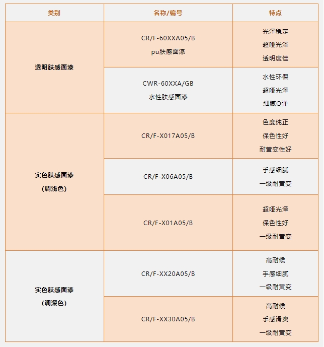 膚感漆可適配多種常見家具板材。其工藝主要通過在一般底漆上噴涂一道膚感面漆,不直接接觸基材。只要底漆與基材通過附著力測試,即可廣泛應(yīng)用于各類板材表面。