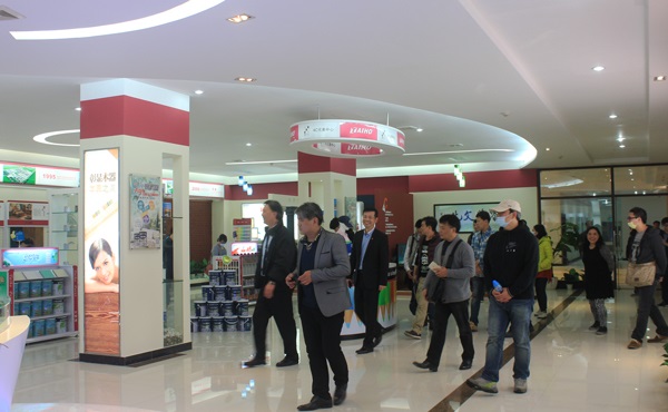 在大寶國際陳賀生董事長的陪同下,陳國都董事長等一行分別對東莞大寶化工安管中心、智能涂裝線、后花園、色板中心、國內市場展廳等進行細致的參觀,陳賀生董事長為大家講解廠區各部分規劃的同時,還與陳國都董事長就產品開發、市場開拓等領域問題進行親切的溝通交流。