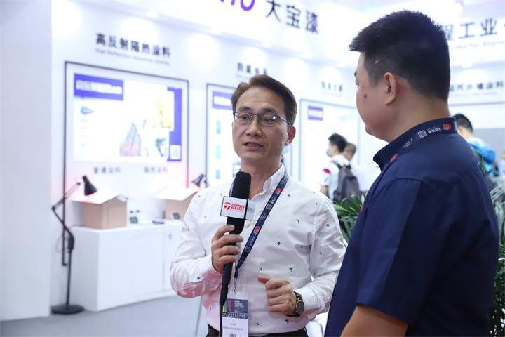 全新的展館、全新的產品體系,吸引了眾多觀眾駐足觀賞。展館中,東莞大寶化工經銷事業部副總經理葉子琛接受了媒體采訪。他闡述了此次參展帶來八大系列產品的目的。他表示,環保與創新依然是涂料企業發展之道。此次大寶漆參展的主題正是契合綠色發展這一趨勢,旨在攜手涂料上下游產業緊密合作,進而推動科技創新、服務創新和環保創新。