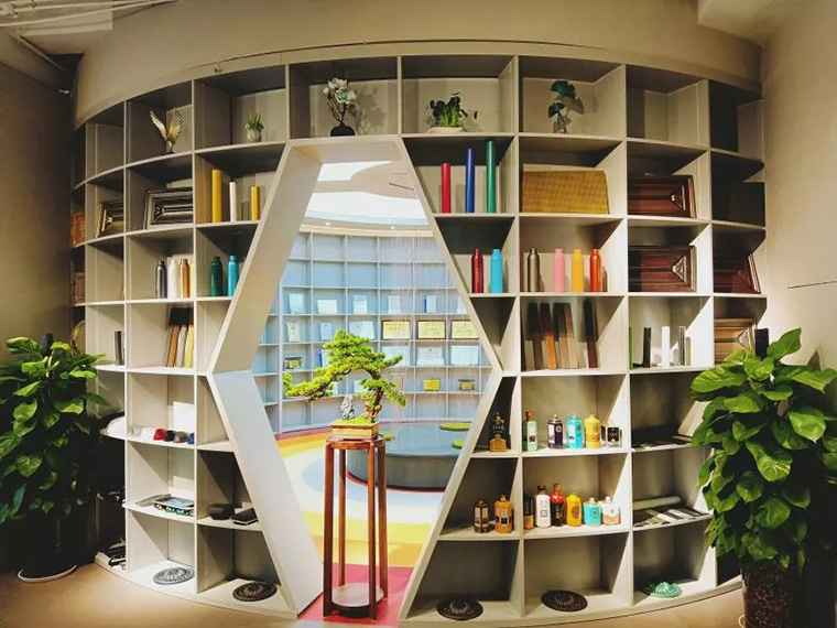此區(qū)有面與面交疊的色板產(chǎn)生的空間立體感,在燈光的渲染下,產(chǎn)生特有的節(jié)奏和韻律,滲透出寫意之感,置身其中洽談業(yè)務(wù)、尋找靈感再適合不過了!