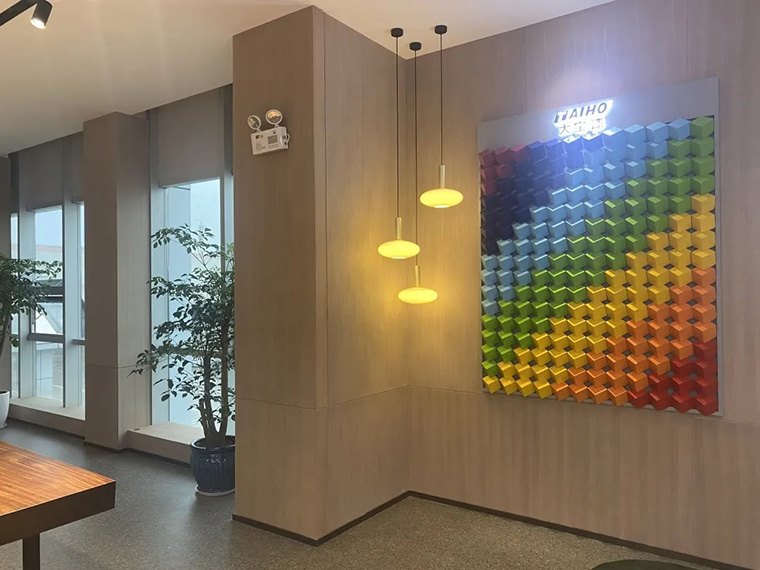 色彩中心陳列的色板涵蓋木器涂料、工業(yè)涂料、建筑涂料..等,以期讓觀者有難忘的色彩及空間體驗(yàn),但色彩變化過多易引起視覺疲勞進(jìn)而達(dá)不到突出醒目的效果,因此大寶設(shè)計(jì)團(tuán)隊(duì)秉持細(xì)致優(yōu)雅、和諧唯美的色彩美學(xué),將色彩與木質(zhì)的融合呼應(yīng)得淋淋盡致,創(chuàng)造出與客戶有共鳴的故事。