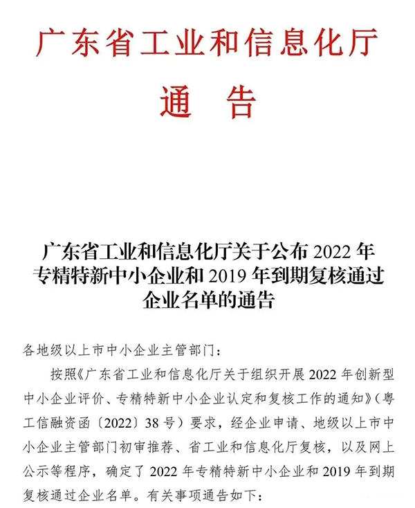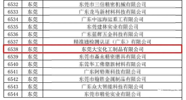 近日,廣東省工業和信息化廳公布了《關于公布2022年專精特新中小企業和2019年到期復核通過企業名單的通知》,東莞大寶化工制品有限公司順利通過各級部門的審核,被認定為2022年度廣東省“專精特新”中小企業。