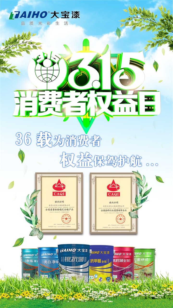 引導質量消費,建設質量強國。日前,從國家質檢總局主管的中國質量檢驗協(xié)會傳來喜訊,在中檢協(xié)舉辦的2019年“3.15”國際消費者權益日活動中開展“產品和服務質量誠信承諾”主題活動中,大寶漆憑借過硬的質量榮獲“全國涂料行業(yè)質量領軍企業(yè)”和“全國質量檢驗穩(wěn)定合格產品”殊榮。