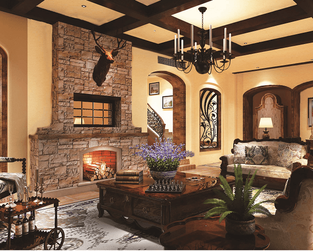 由于美國人喜歡有歷史感的東西,因此美式風(fēng)格崇尚仿古,這不僅反映在軟裝擺件上對仿古藝術(shù)品的喜愛,同時也反映在裝修上對各種仿古墻地磚、石材的偏愛和對各種仿舊工藝的追求上,如美式風(fēng)格的墻面裝修,喜歡使用大寶米蘭珠光石系列藝術(shù)壁材等材料,營造紋理萬千、天然去雕飾的仿石效果。