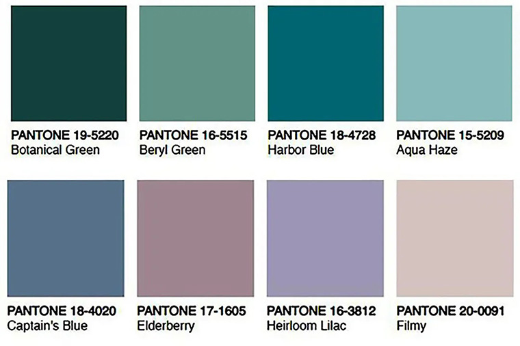 秋冬室內(nèi)色彩趨勢,以深綠色為主調(diào),輔助較為清新淡雅的藍(lán)、粉、紫與裸色,表達(dá)出平和溫潤的安定力,發(fā)散令人愉悅的舒適感,微妙吸睛。